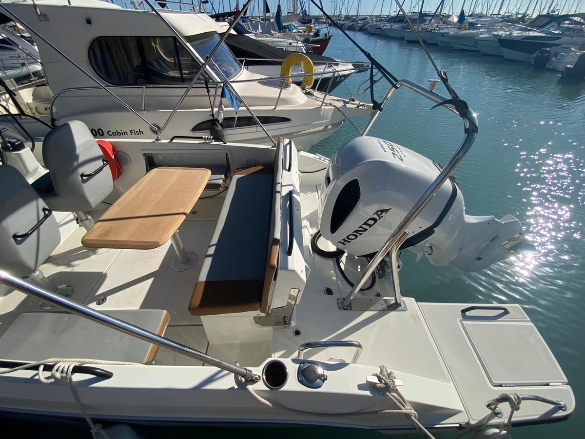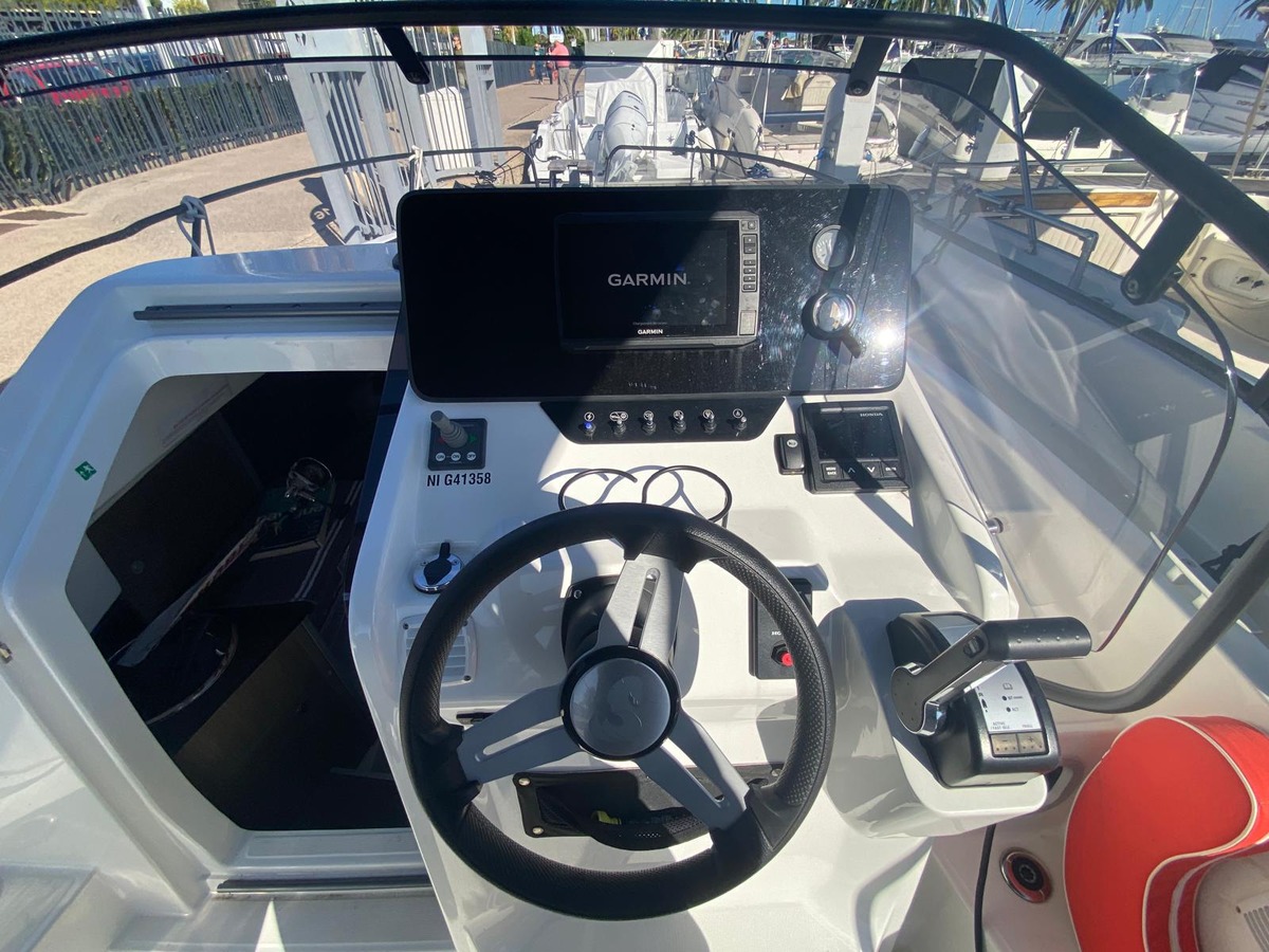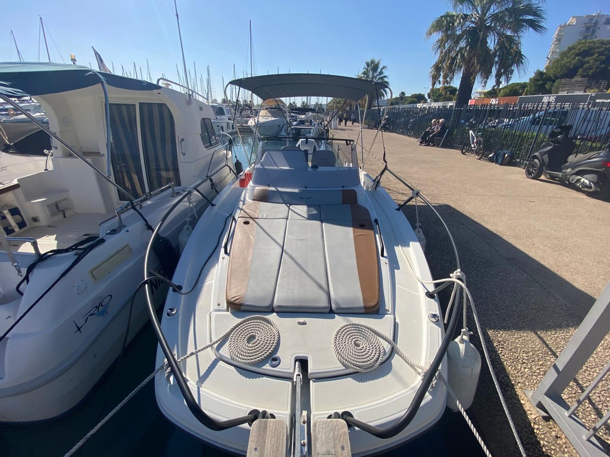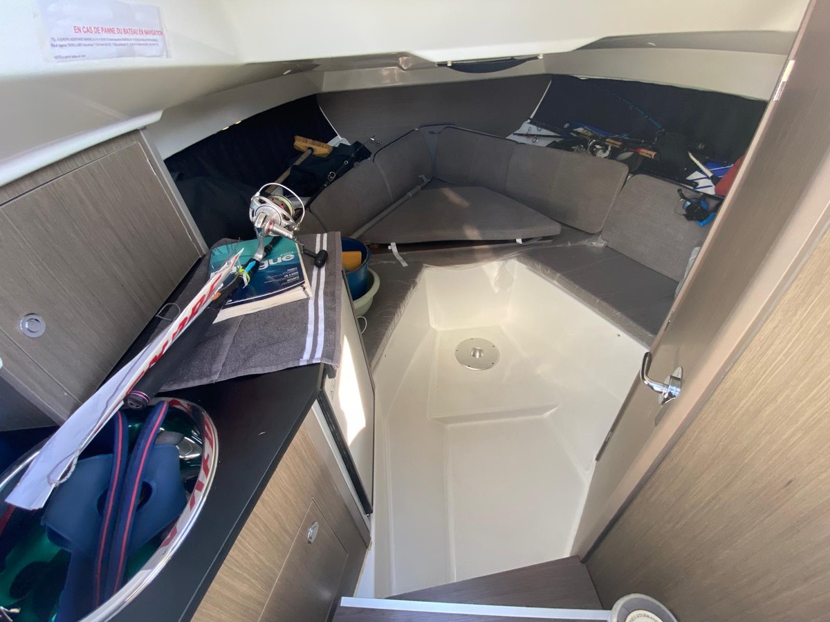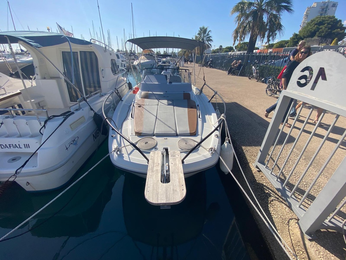 Vous profiterez d’une excellente protection grâce à son T-top ainsi que de selleries en très bon état, offrant un réel confort à bord. Ce modèle est idéal pour profiter pleinement de la mer, aussi bien en navigation qu’au mouillage.