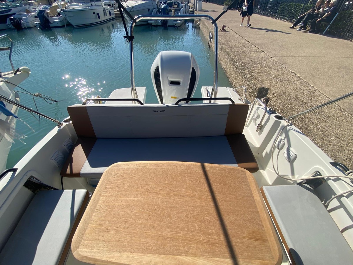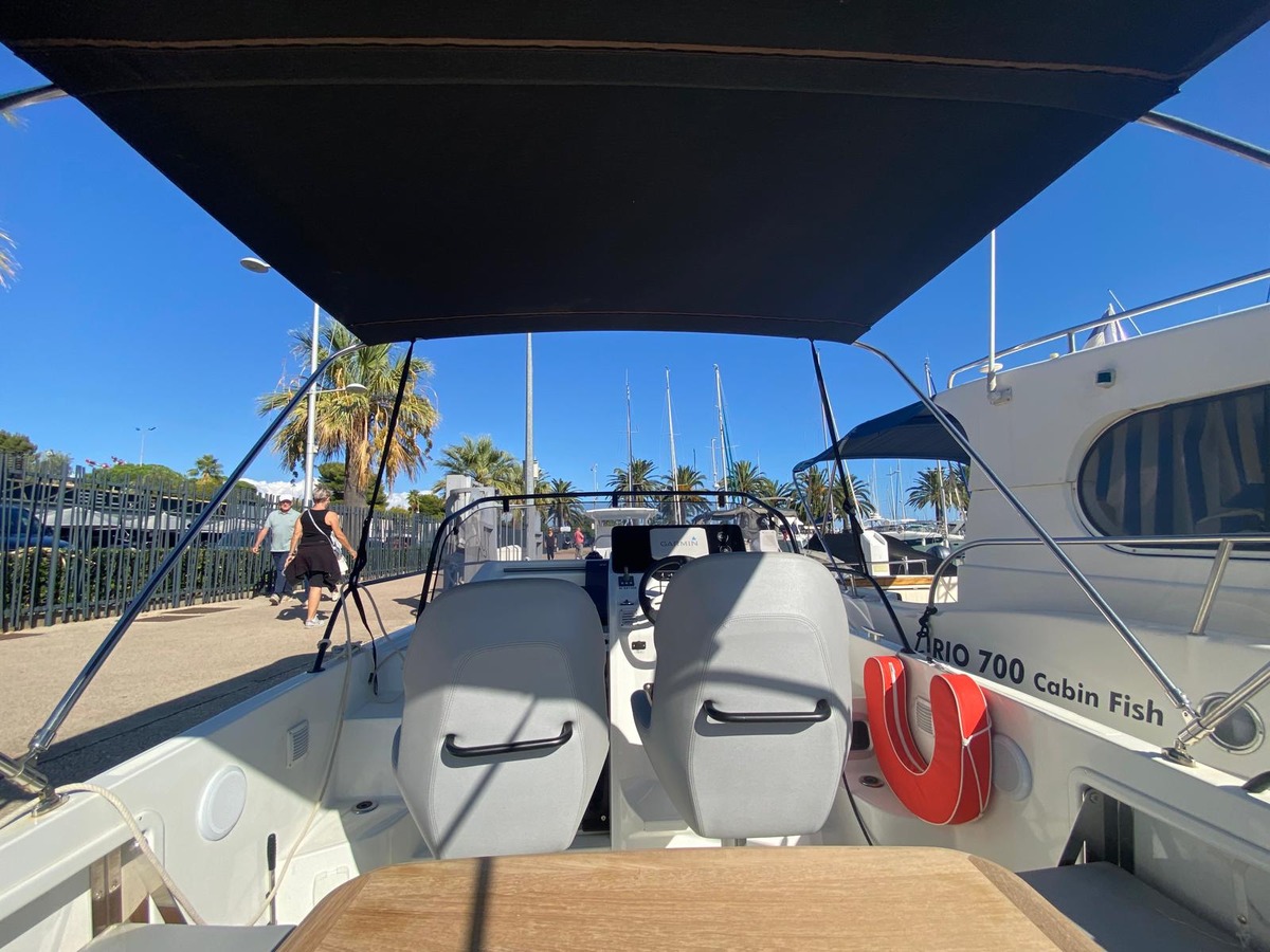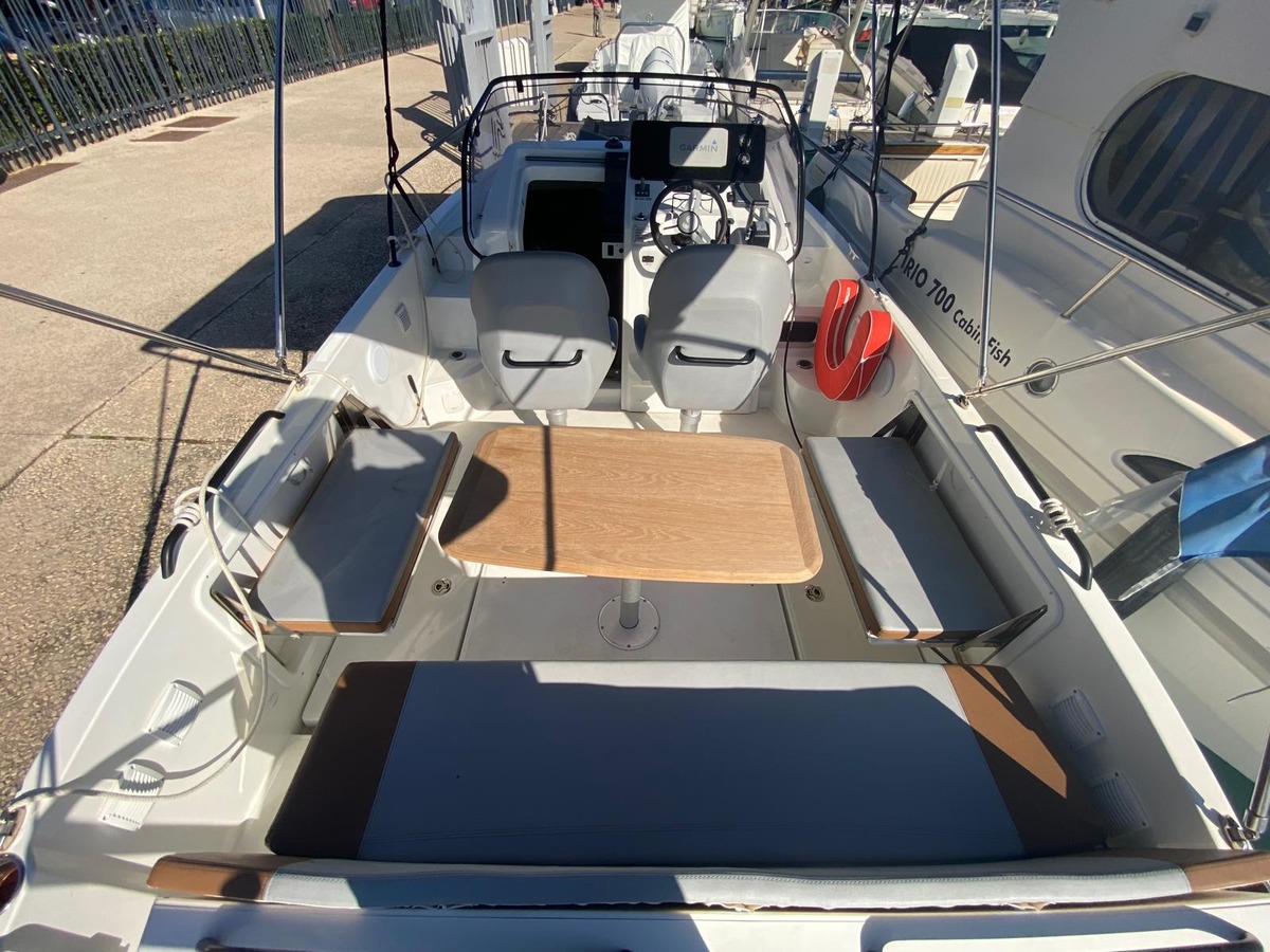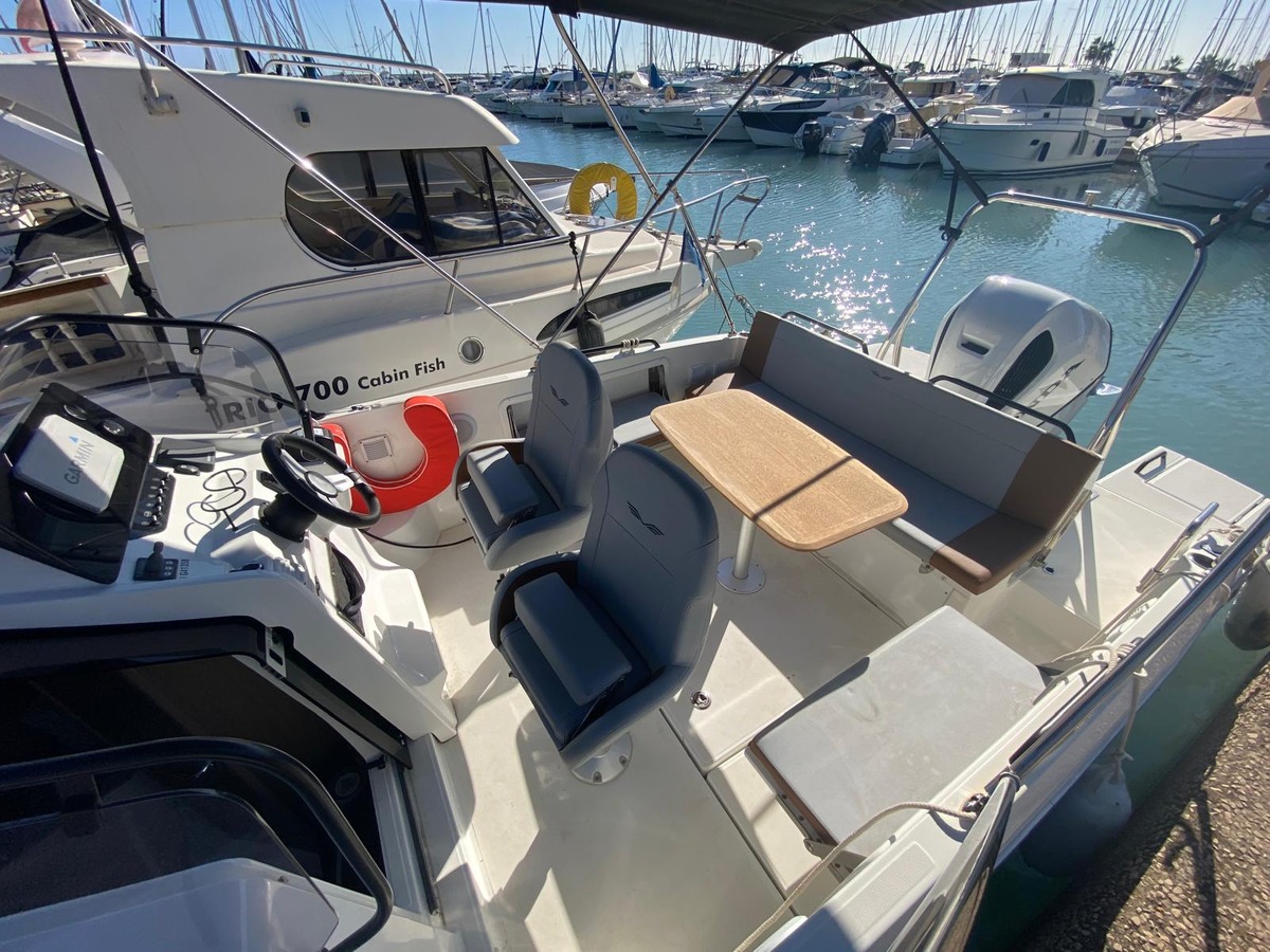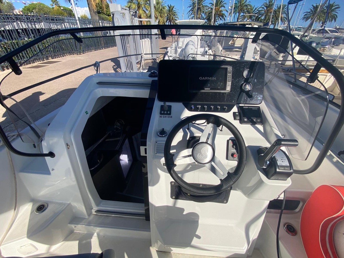 Vous profiterez d’une excellente protection grâce à son T-top ainsi que de selleries en très bon état, offrant un réel confort à bord. Ce modèle est idéal pour profiter pleinement de la mer, aussi bien en navigation qu’au mouillage.