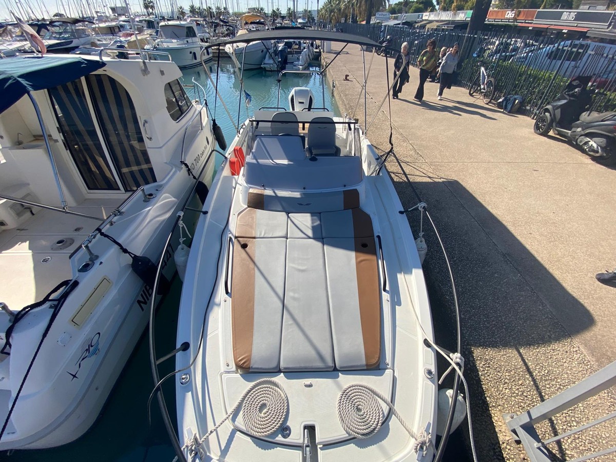 Superbe Flyer 8 Sundeck de 2022, prêt à prendre la mer et entièrement équipé pour vos journées de détente comme pour vos sorties de pêche. Motorisé par un Honda 250 chevaux avec commandes électriques, il totalise seulement 180 heures de navigation. Entièrement révisé et caréné en novembre 2025, il se présente dans un état irréprochable et prêt à naviguer immédiatement.