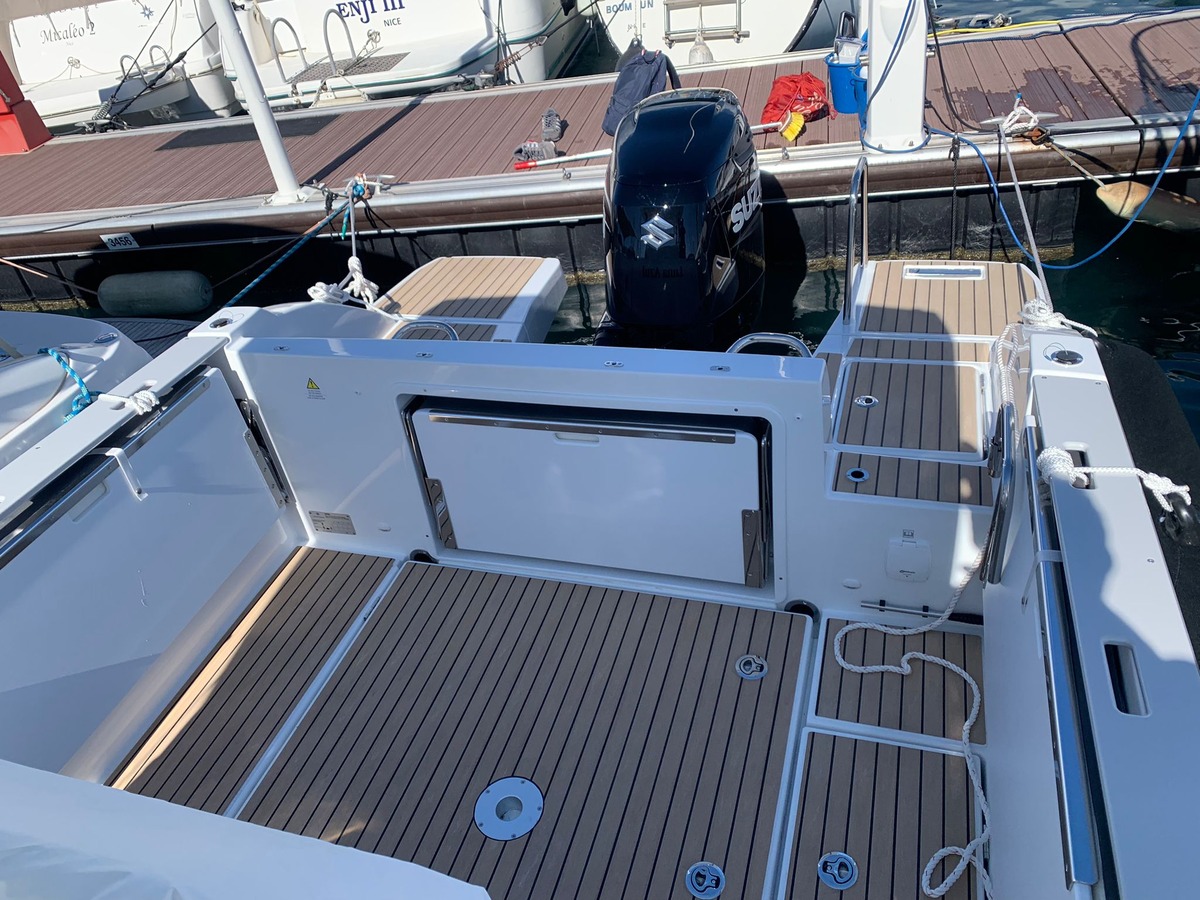 Motorisé par un Suzuki 300 CV APXX à commande électrique, il offre une navigation puissante, confortable et sécurisante. Sa version T-Top, son électronique grand écran, son revêtement Flexiteek, ses plateformes de bain, son système audio Fusion, ses toiles d’ombrage avant et arrière, ainsi que son guindeau électrique et son propulseur d’étrave en font un bateau complet et prêt à naviguer.