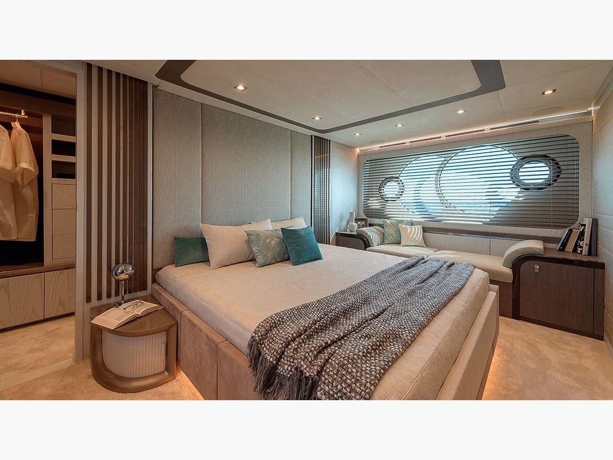 MCY 76 se caractérise par de vastes espaces intérieurs, une meilleure exposition à la lumière naturelle et des possibilités de personnalisation de l'agencement sans precedent; pour ça il se résume en quelques mots clés : intimité accrue, confort extrême et personnalisation. Différents espaces ont été créés pour favoriser les moments de détente dans des canapés et des fauteuils confortables, ou pour dîner autour d'une grande table en marbre de Carrare. La cuisine entièrement équipée, qui se fond naturellement dans le design du salon, a été conçue pour répondre à tous les souhaits.