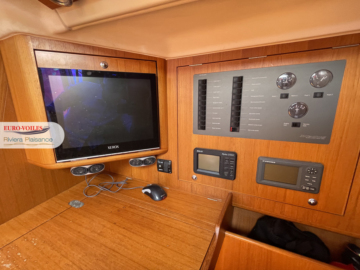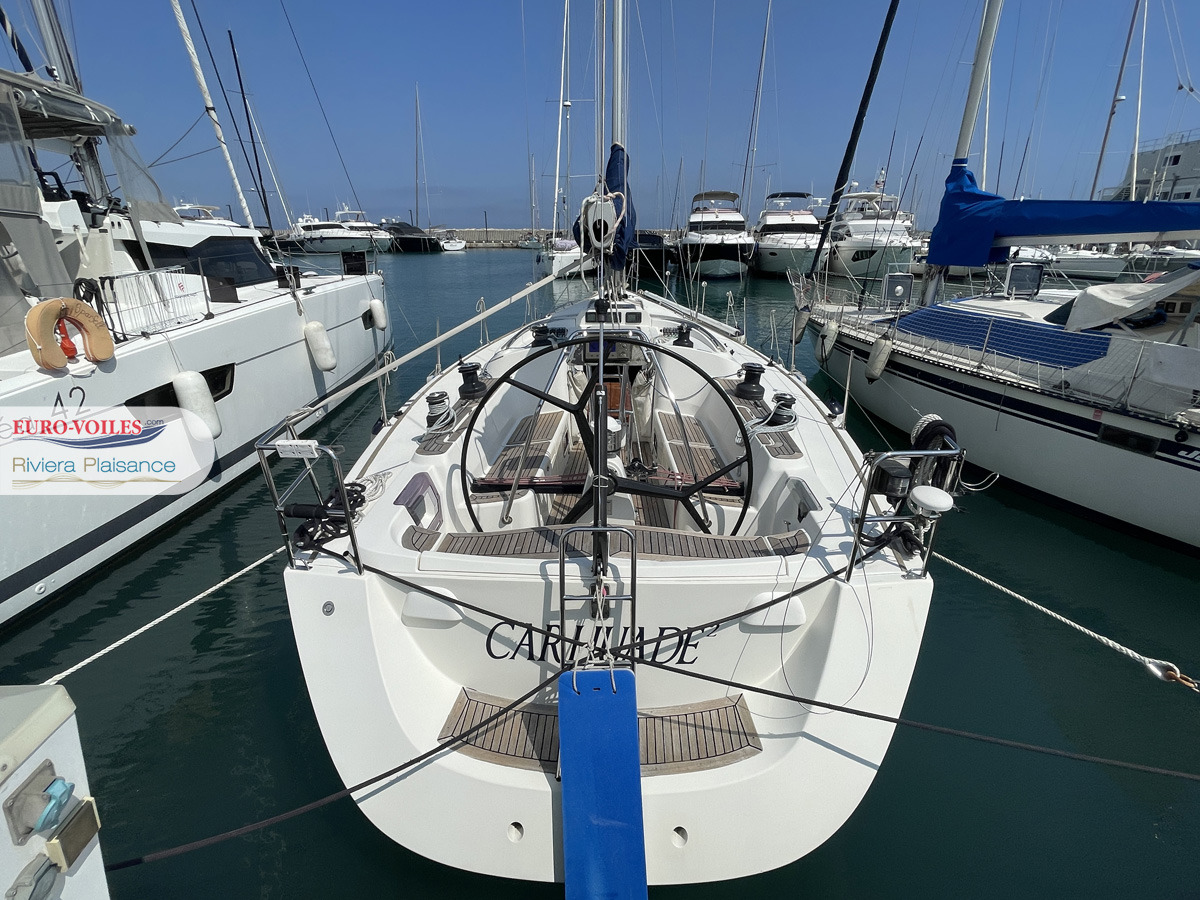 D'une grande qualité de fabrication, Carhuade présente de très belles boiseries, et d'un niveau de finition étonnant. Aménagé en 3 cabines, 2 salle de bains, il saura satisfaires toutes vos croisières. Son jeu de voiles complet, GV, Génois, Solent, de All Purpose en membrane Trilam et Dyneema ainsi que son Geannaker en mylar sans oublier son Spi symétrique et le tangon carbone, sauront satisfaire vos envies de croisières rapides.
