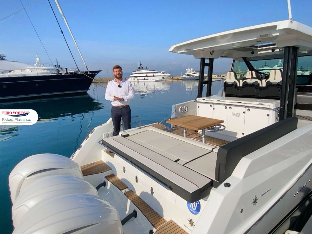 Available immediately with Euro-Voiles, Riviera Plaisance, and HD Marine, official Jeanneau, Prestige, and Lagoon dealers, as well as specialists in pre-owned boat sales on the French Riviera.